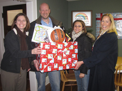 Ingrid Joost Todt, Wish Director at The Rainbow Connection,accepts gifts from Assets International staff on a cold Sunday afternoon in December, 2010.